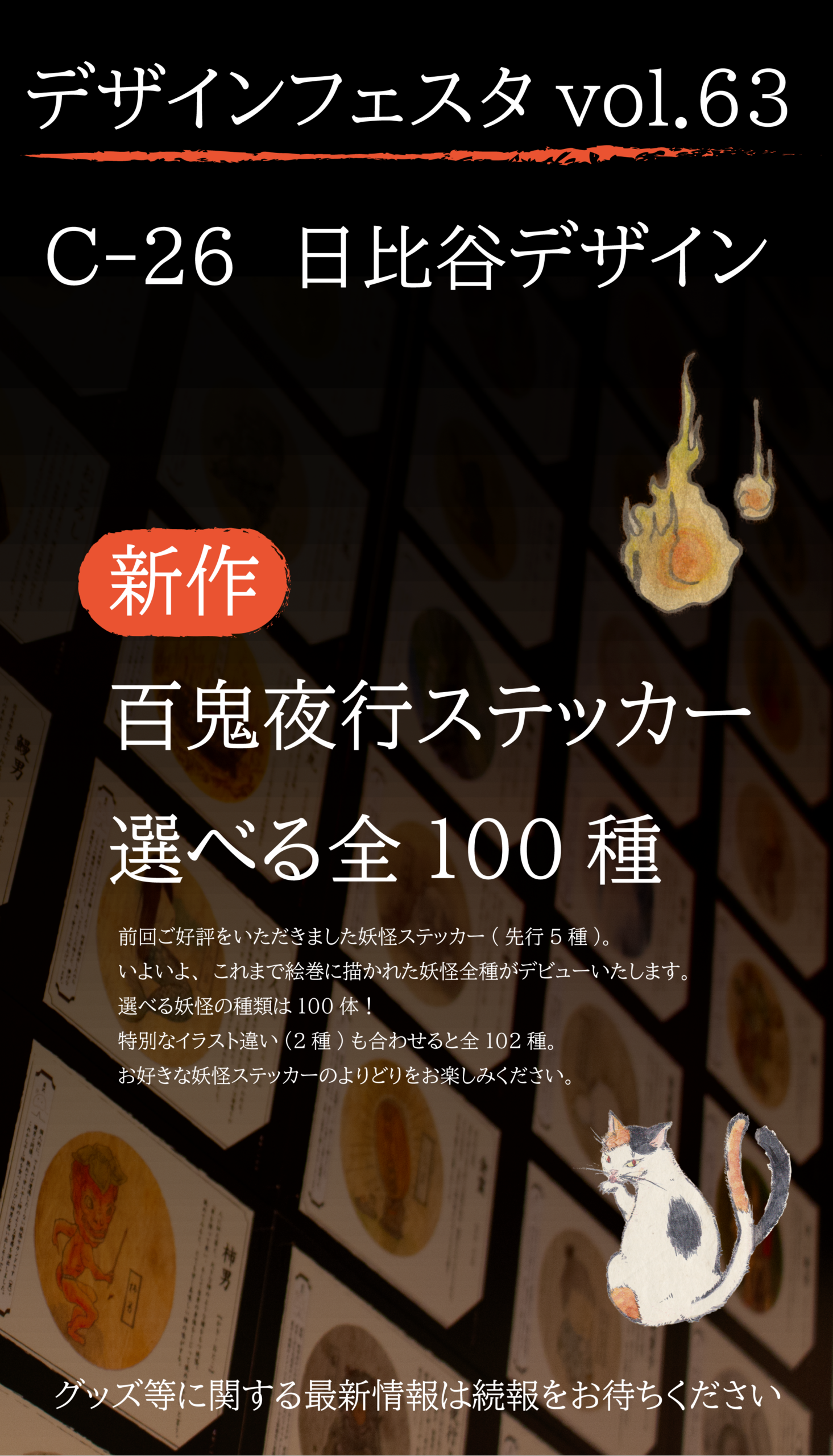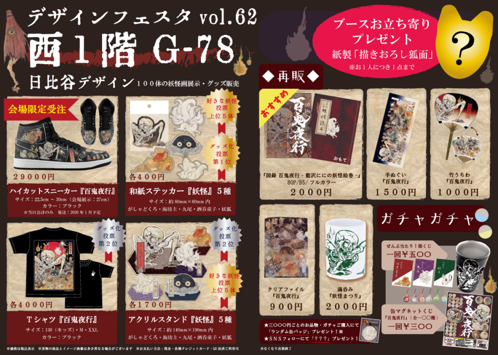 以前配布した妖怪を探せシート、栞等、ご来場やご購入でお配りしております。